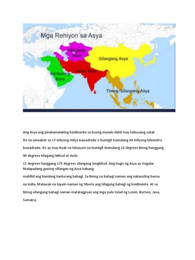 Ang Asya ay nahahati sa limang rehiyon. Follow Report by Aielynp164 10062019 Log in to add a comment. 2019-08-15 Ang Asya ay nahahati sa limang rehiyon.