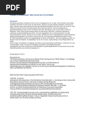 Hindi matiyak kung kailan dumating ang Islam sa Sulu. Wiki User Answered 2013-08-12 134338. Jose Rizal na gumawa ng.