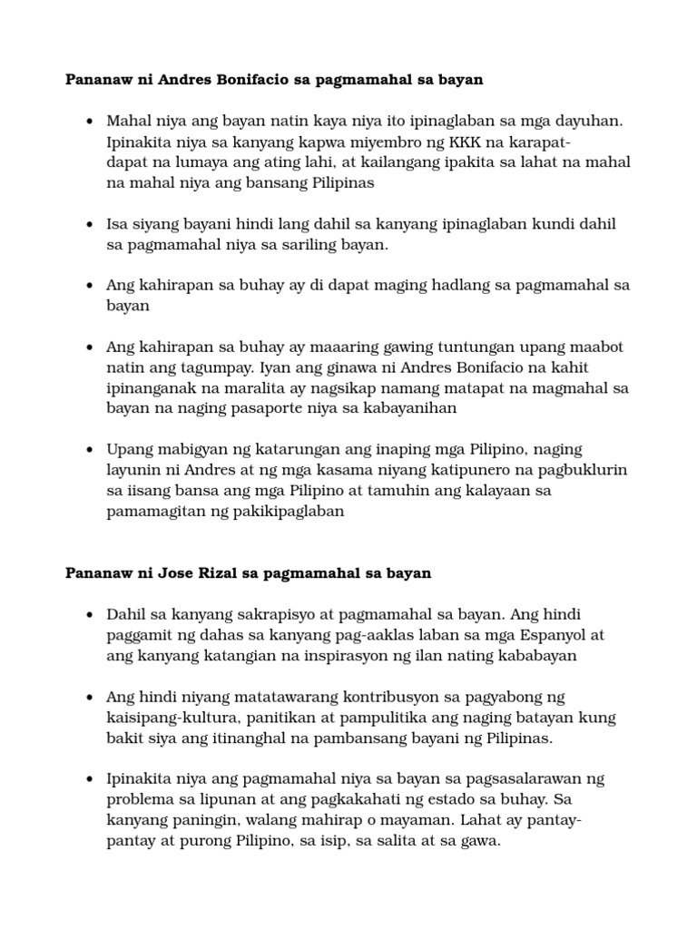 Pananaw Ni Andres Bonifacio Sa Pagmamahal Sa Bayan