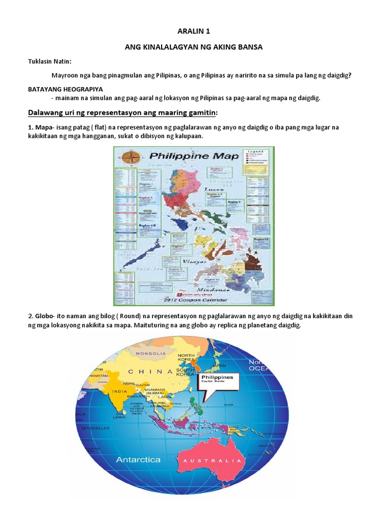 Aralin 1 Ang Kinalalagyan Ng Aking Bansa
